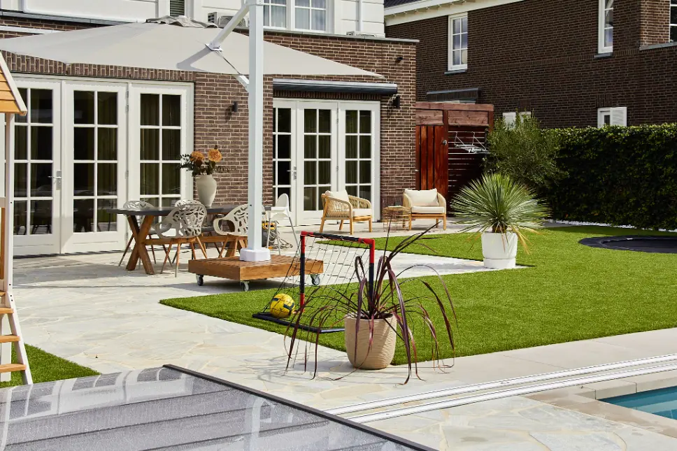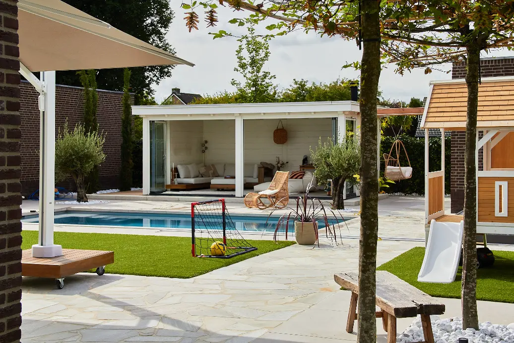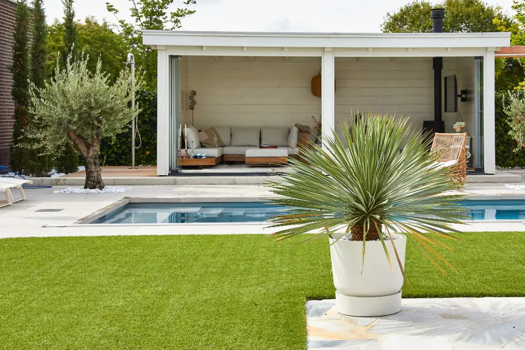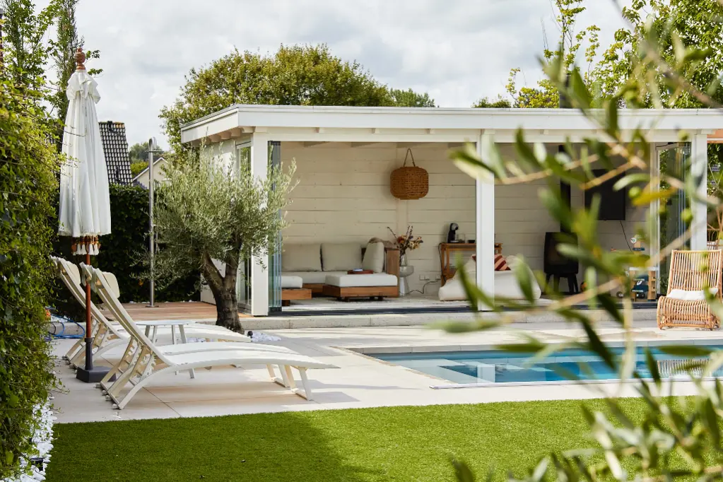 Daarna hebben we de uitvoering verzorgd met veel aandacht voor detail en afwerking. We hebben gewerkt met strakke randen, zorgvuldig gelegd natuursteen en een minimalistische inrichting die rust brengt. De mediterrane sfeer is versterkt met karaktervolle beplanting zoals olijfbomen en luchtige groene accenten, en er is een buitendouche geplaatst om het resort-gevoel compleet te maken. Alles is aangelegd met het oog op comfort, gebruiksgemak en een blijvend verzorgde uitstraling.